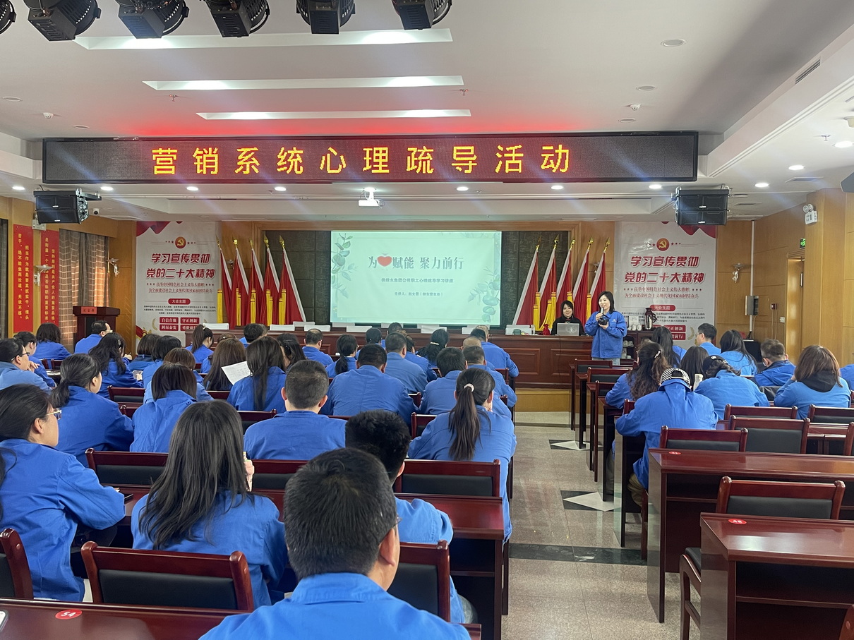 為有效提升職工心理抗壓能力,保持良好心態(tài),進一步優(yōu)化供水服務(wù)質(zhì)量,4月28日,客服中心組織營銷對外服務(wù)人員開展了一場意義非凡的心理疏導專題活動。本次活動特別邀請集團公司內(nèi)部心理咨詢師趙文霞擔任主講嘉賓,為供水服務(wù)注入“心”能量。
